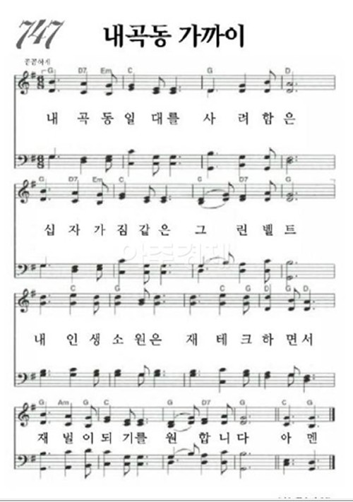 "내곡동 일대를 사려함은 십자가 짐같은 그린벨트” “내 인생 소원은 재테크하면서 재벌이 되기를 원합니다” 등의 가사가 웃음을 준다. 이 곡은 방송 직후 음원·동영상 등이 인터넷에 확산됐고 가사를 넣은 악보도 공개됐다. 악보에 있는 ’747’번은 이대통령의 747공약을 빗댄 표현이다.