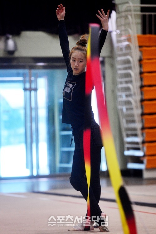 음, 내게 시구 제의 올 일이 없을 것 같다,(웃음) 물론 온다면 하겠지만, (수지) 언니가 너무 했다.(웃음) 리듬체조 선수에 대한 기대치를 높여서 부담될 것 같다. (리듬체조 외에 좋아하는 종목이 있다면) 축구! 광저우 아시아경기대회에서 홍명보 감독이 이끈 남자 축구대표팀 선수들과 이주 친해졌다. 홍정호 선수가 티켓을 줘서 대표팀 경기를 보러 간 적도 있다.