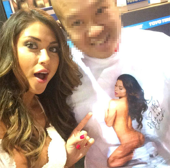 사진 속 아리아니 셀레스티는 남성팬과 다정하게 서서 포즈를 취하고 있다. 특히 남성은 아리아니 셀레스티의 누드 사진을 프린팅한 티셔츠를 입고 있어 눈길을 끌고 있다.