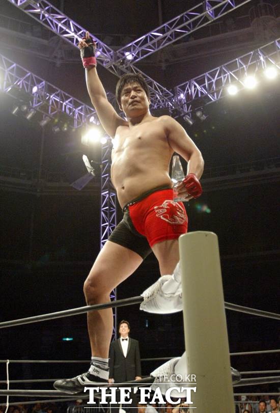 이날 최무배는 "담석증으로 작년에 쓸개 수술을 해서 쓸개가 없다. 여러 가지 상황이 좋지 않다. 이기면 좋겠지만, 지더라도 재미있는 경기를 하겠다"며 "팬서비스 차원에서 수플렉스를 던져보겠다"고 말했다.