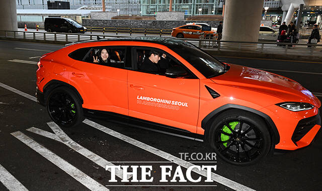 2026 밀라노·코르티나담페초 동계올림픽 일정을 마친 쇼트트랙 김길리가 24일 오후 인천국제공항을 통해 귀국해 람보르기니를 타고 공항을 나서고 있다. /인천국제공항=박헌우 기자