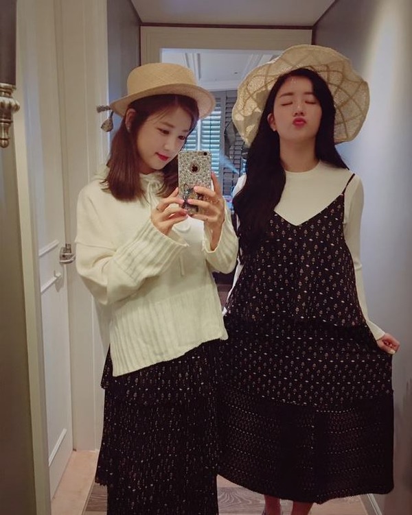 초롱과 보미는 같은 모양의 롱치마를 입고 보미는 눈을 감은채 뽀뽀를 하는 자세를 취했고, 초롱은 셀카를 찍으며 미소를 짓고 있는 모습을 담았다.