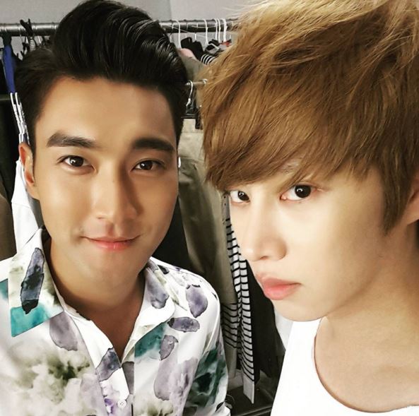 공개한 사진에는 슈퍼주니어 대표 얼굴인 최시원과 김희철이 우월한 유전자를 드러내며 사진을 찍었다.